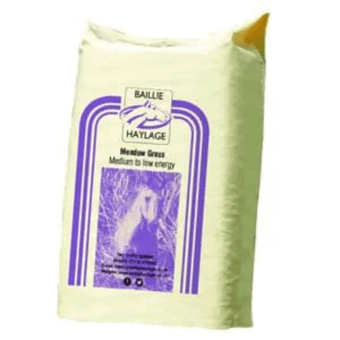Baillie Haylage Meadow Grass is a medium to low energy haylage, low in sugar, protein and energy (calories) and is suitable for leisure horses and ponies, native breeds, veterans, those in on rest or light work, animals on low-input diets and some laminitics.